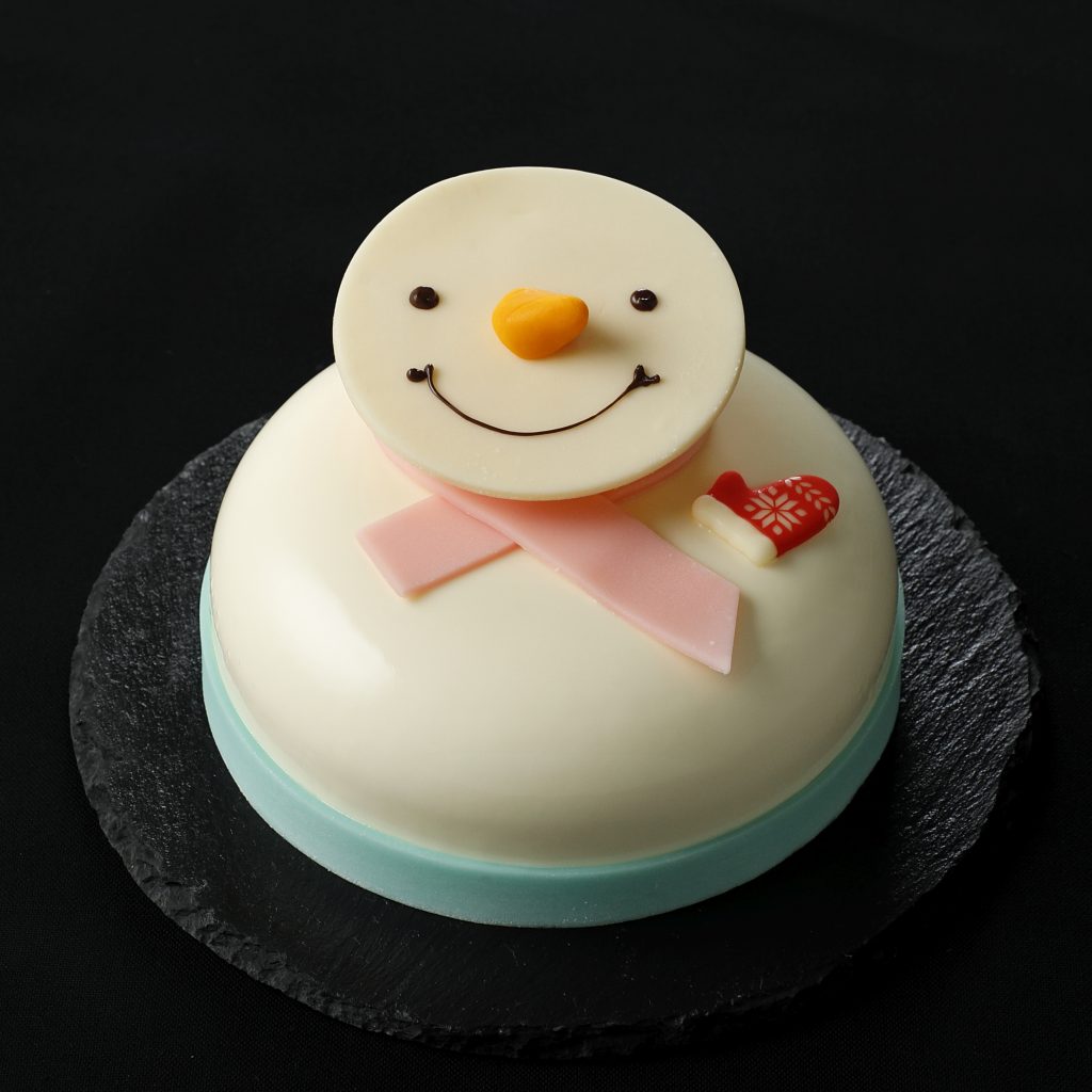 スノーマンを型どった可愛いホワイトチョコレートのケーキです。バニラを効かせたホワイトチョコムースの中に、ストロベリー、ラズベリー、ブルーベリーのミックスベリーコンフィチュールを入れ込みました。