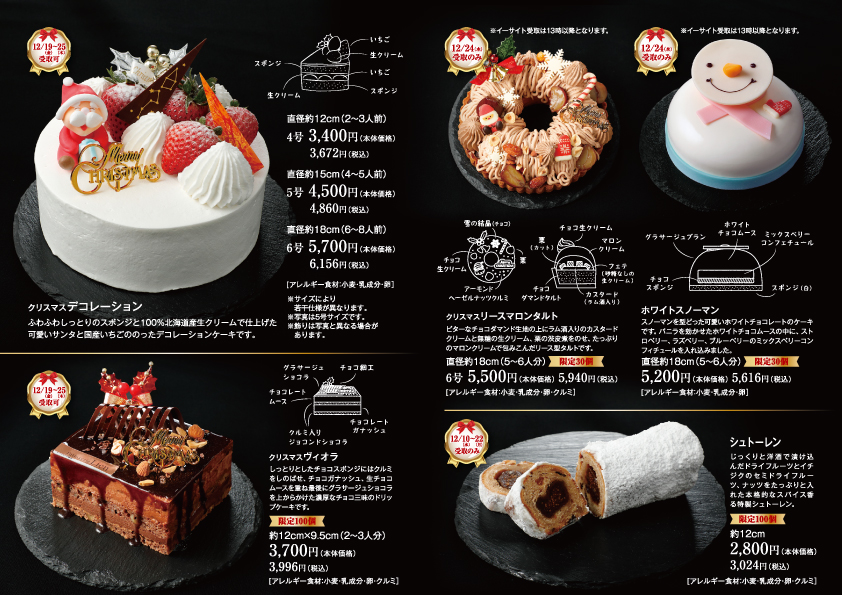 各ケーキのご案内をご確認ください。